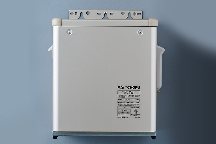 停電してもバッテリーの電気を利用してお湯がつくれます。目安として4人家族が1日1回(3日間)の給湯・シャワーが使用できます。また、いざという時に携帯電話の充電などに使えるコンセント付(最大出力200W)。